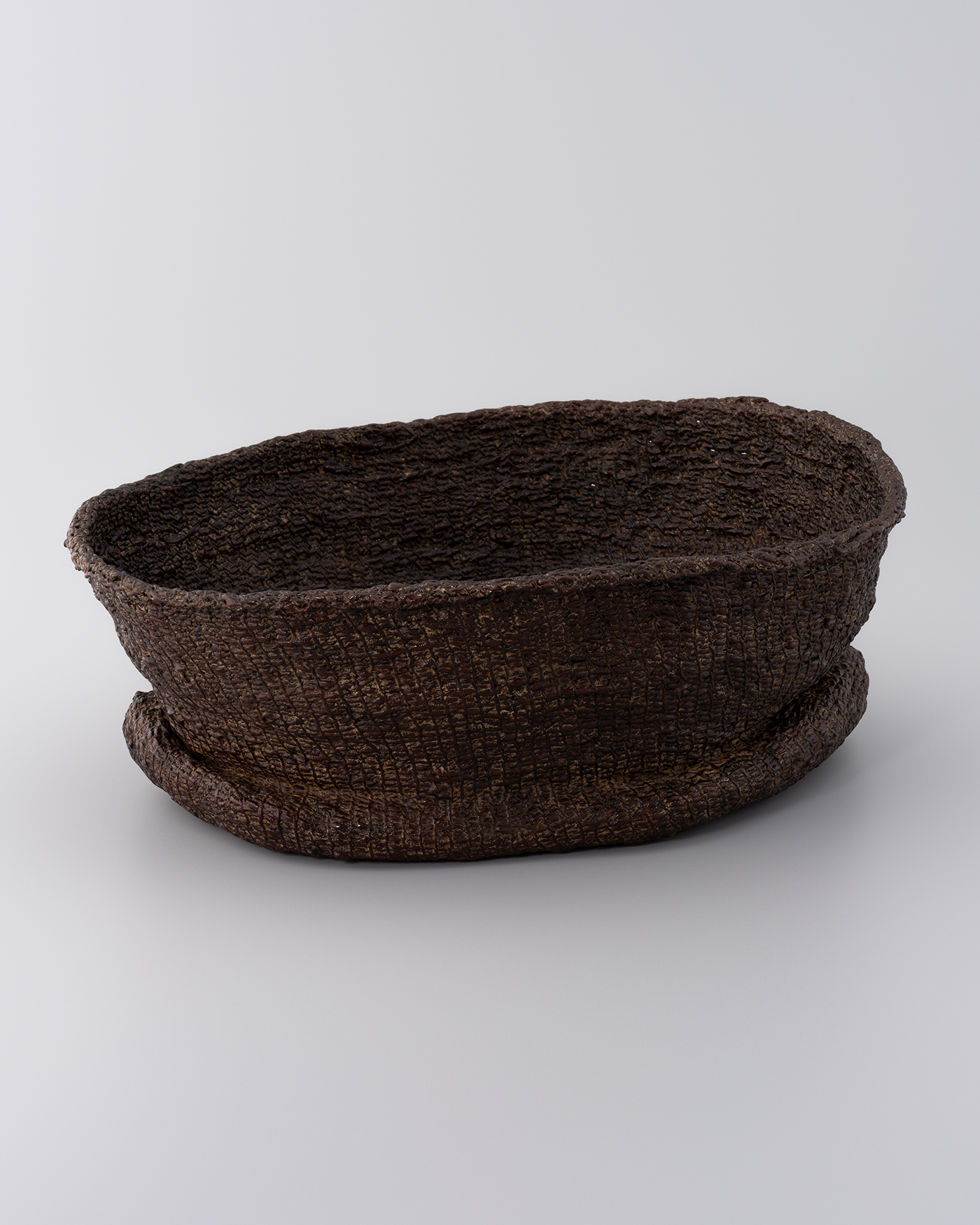 "Mimic / undulation-1"2023, Cowhide, lacquer, hemp thread, Japanese paper, clay,13.5×18×17cm